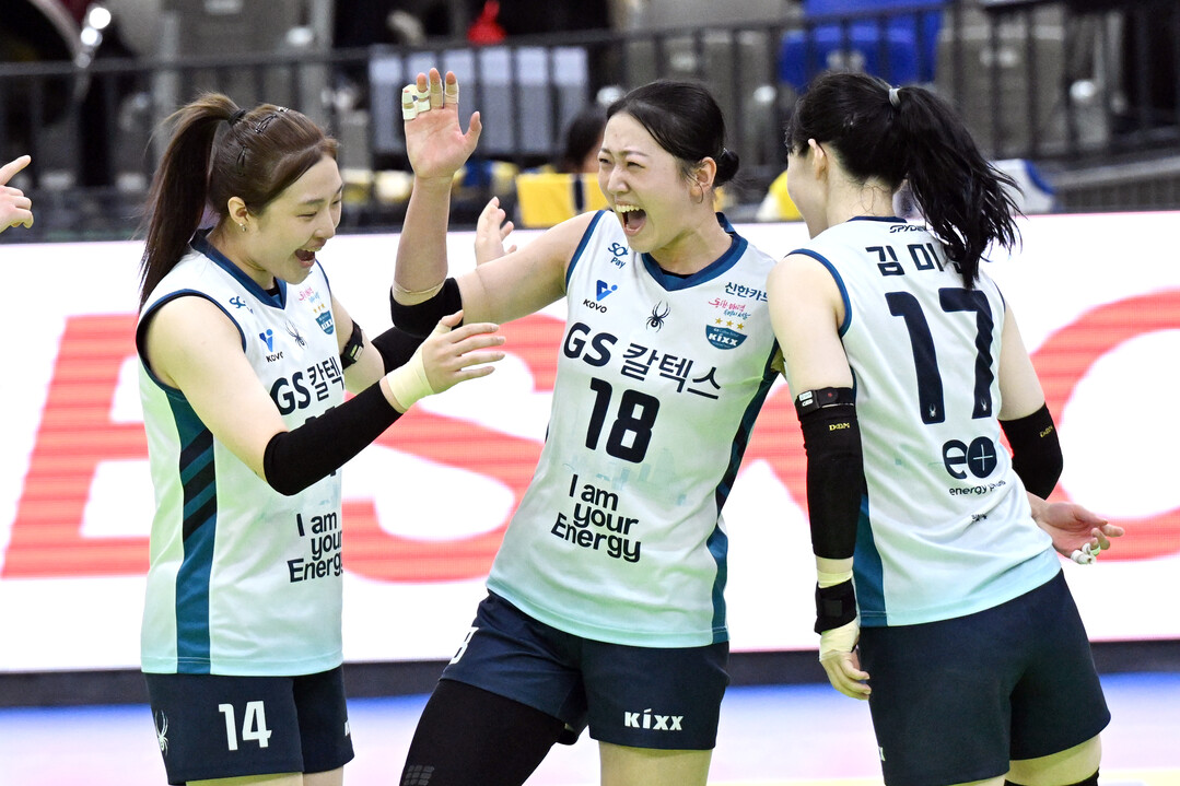GS칼텍스 권민지가 득점에 기뻐하고 있다.