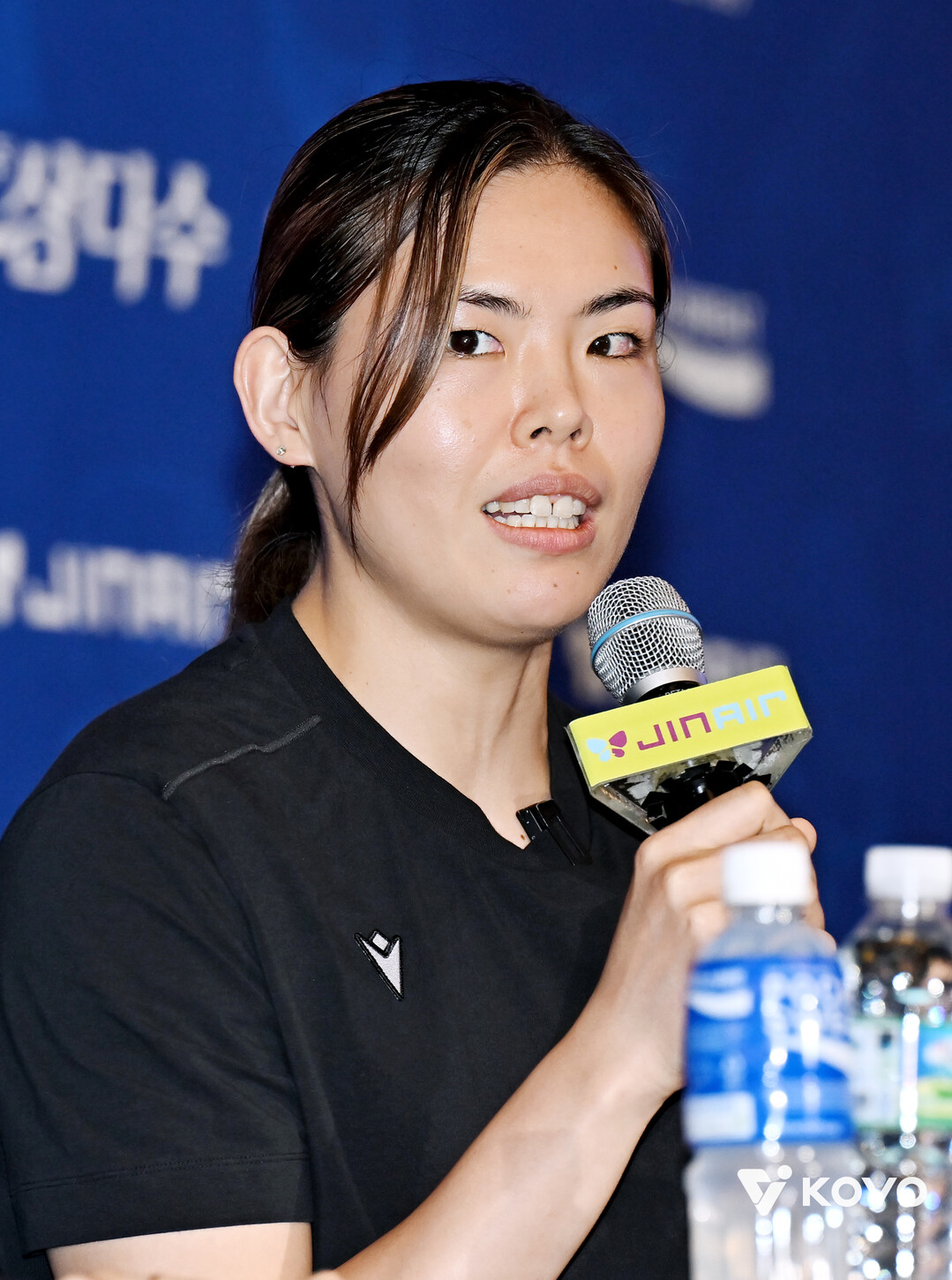 뒤늦게 팀에 합류한 만큼 팀에 적응하는 데 집중했던 시마무라다. 그는 “대표팀에서는 미들블로커로서 갖고 있는 목표나 공격 등에 포커스를 맞췄다면, 팀에 합류한 뒤에는 소통을 위해 적극적으로 다가가려고 했다”고 밝혔다.