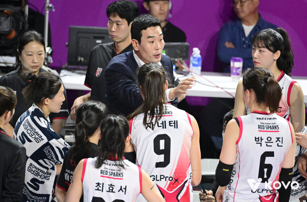 그도 그럴 것이 정관장은 완전체가 아니다. 주전 세터 염혜선에 이어 김채나마저 컵 대회에서 발목을 다쳤다. 현재 가용 가능한 유일한 세터는 2005년생의 프로 3년 차 세터 최서현이었다. 정관장은 올해 여름 현대건설에서 자유신분선수로 풀린 최서현을 영입하면서 세터 보강을 했다. 부상 악재 속에 최서현을 1번 세터로 기용했다.