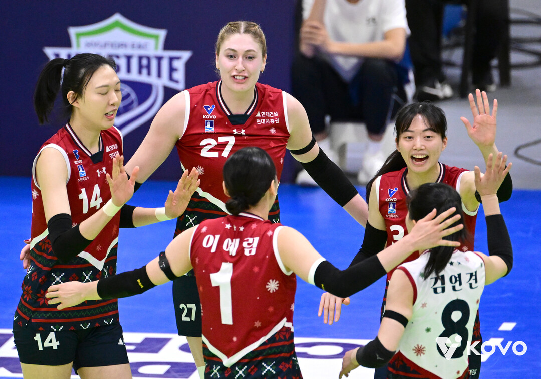 현대건설의 기세가 무섭다. 2025년 12월 2일부터 12월 31일까지 8경기 연속 승리를 거머쥐었다. 주포 카리와 정지윤의 부상으로 인한 어려움 속에서도 꾸준히 승점을 쌓았다. 현재 현대건설은 13승6패(승점 38)로 2위에 랭크돼있다. 한 경기 덜 치른 선두 한국도로공사(15승3패, 승점 40)와 승점 차를 2로 좁히는 데 성공했다.
