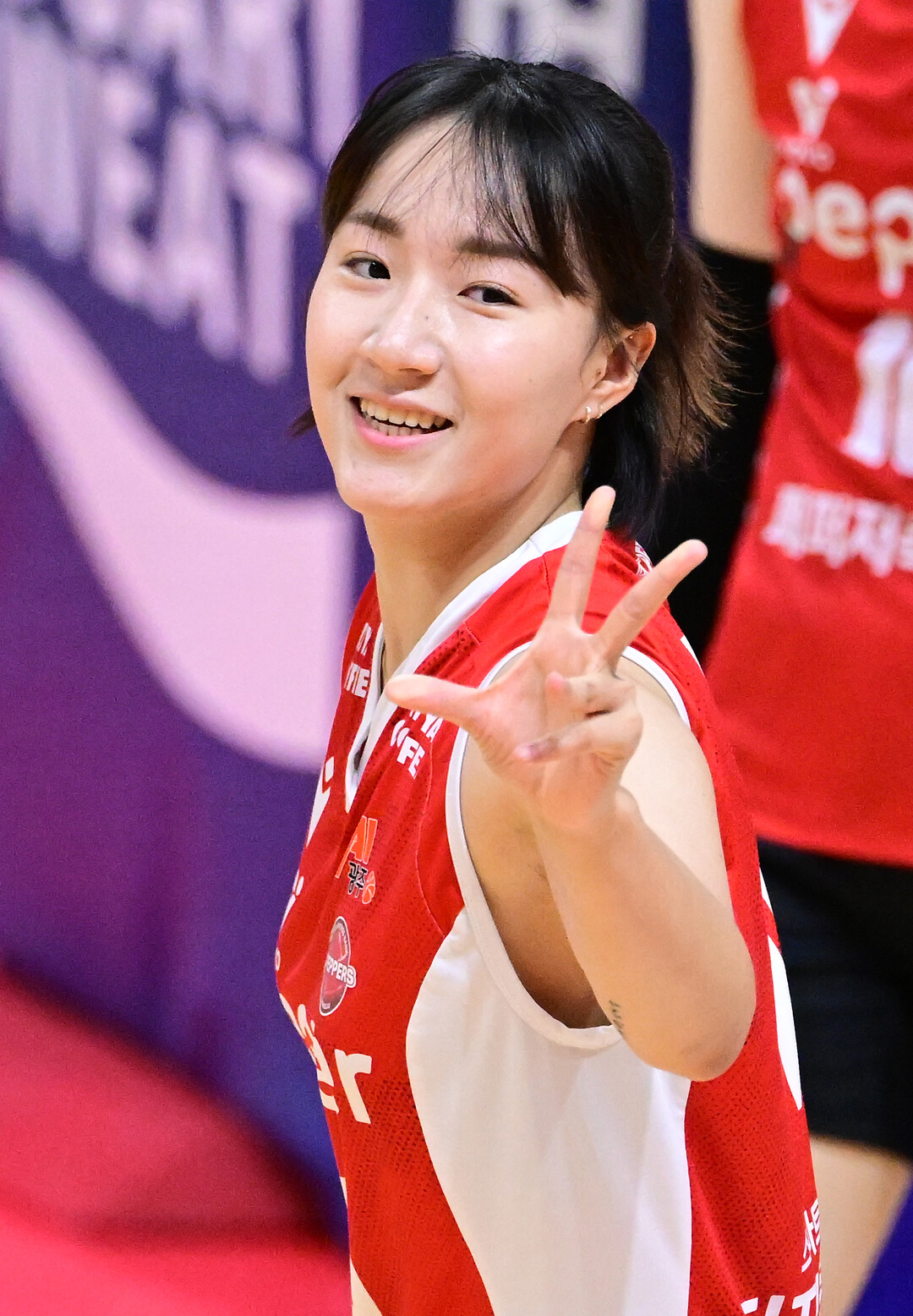 [더발리볼 = 유진형 기자] 페퍼저축은행 박수빈이 13일 오후 광주 페퍼스타디움에서 열린 '진에어 2025~2026 V-리그' 흥국생명과의 경기에서 기뻐하고 있다.