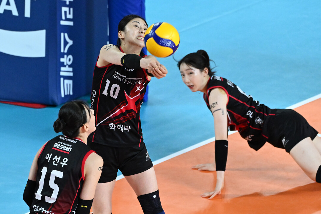 [더발리볼 = 한혁승 기자] 12일 대전 충무실내체육관 열린 진에어 2025~2026 V-리그 여자부 정관장-한국도로공사 경기.