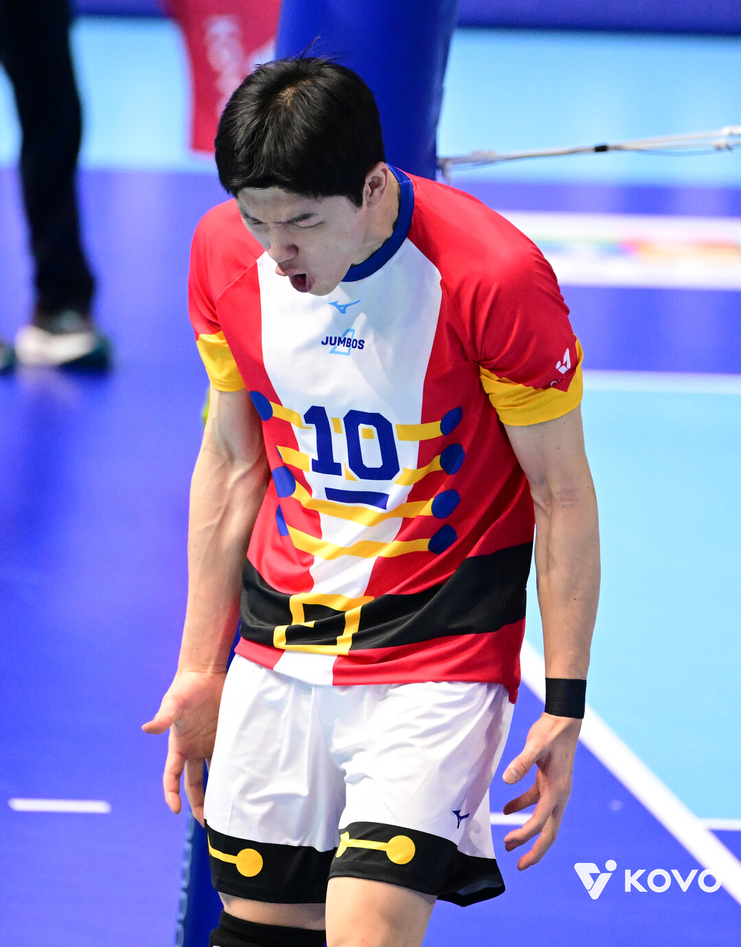 당장 25일 KB손해보험전에서 정지석의 공백은 확연히 드러났다. 안드레스 비예나(등록명 비예나)가 정지석이 빠진 전위를 마음껏 폭격했고, 러셀이 흔들리는 상황에서 임동혁까지 부진하자 대한항공의 하이 볼 처리는 사실상 정한용 한 명에게 의존하는 구조가 됐다. 경기 초중반까지 공격 성공률 100%를 유지할 정도로 감이 좋았던 정한용이지만 결국 부담감을 끝까지 버티지는 못했다.