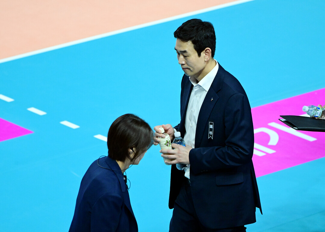 [더발리볼 = 곽경훈 기자] 정관장 고희진 감독이 16일 오후 인천 부평구 삼산월드체육관 열린 '진에어 2025-2026 V-리그' 흥국생명과 정관장의 경기에서 세트 스코어 3-0으로 패배한뒤 아쉬워 하고 있다. (사진= 한국배구연맹 KOVO)