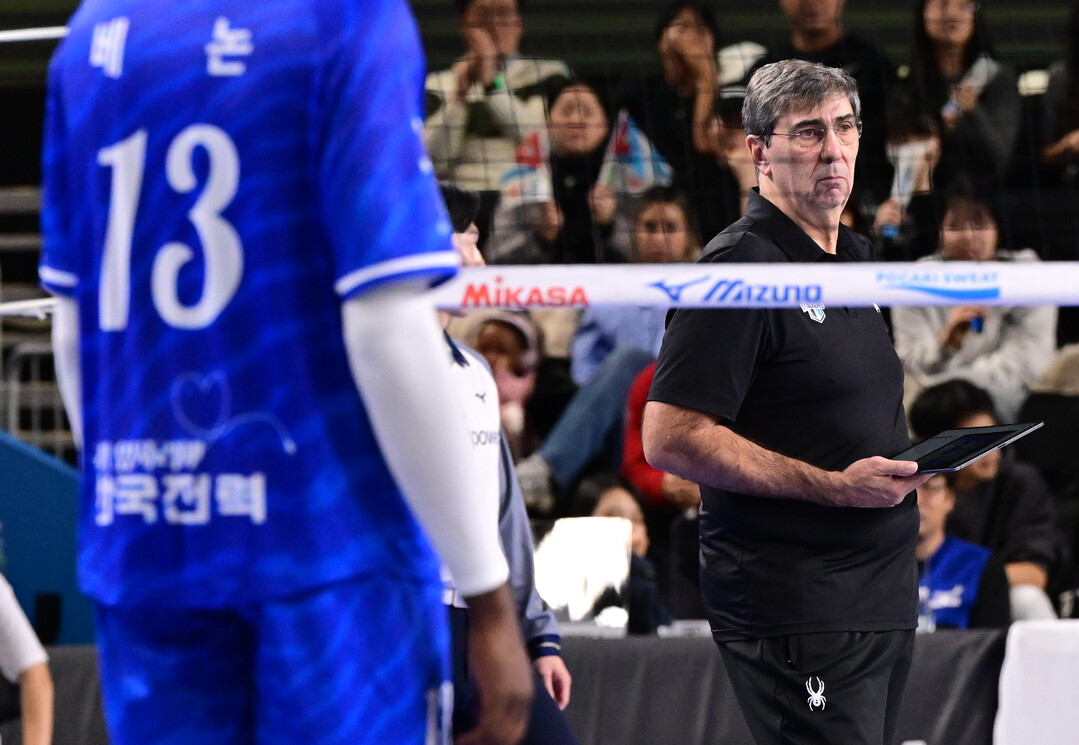 [더발리볼 = 유진형 기자] 현대캐피탈 필립 블랑 감독이 20일 오후 천안 유관순체육관에서 열린 '진에어 2025~2026 V-리그' 한국전력과의 경기를 보고 있다.