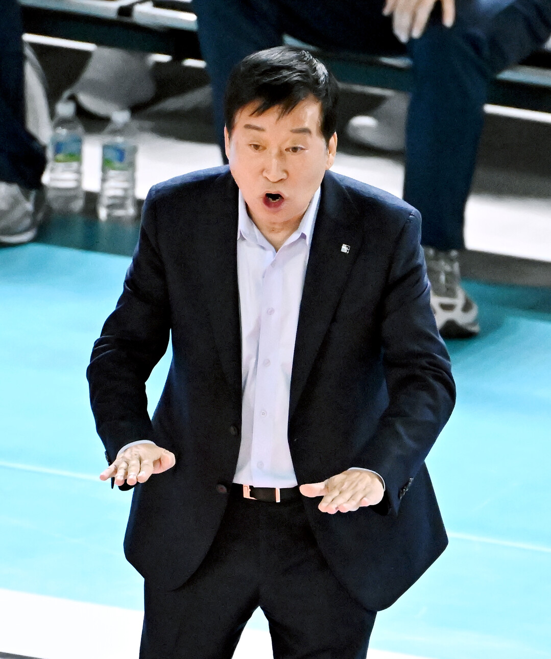 [더발리볼 = 송일섭 기자] IBK기업은행 김호철 감독이 31일 오후 대전광역시 충무체육관에서 진행된 '2025-2026 KOVO 프로배구 V리그' 여자부 정관장과 IBK기업은행의 경기에서 선수들에 지시를 하고 있다. [사진 = 한국배구연맹(KOVO)]