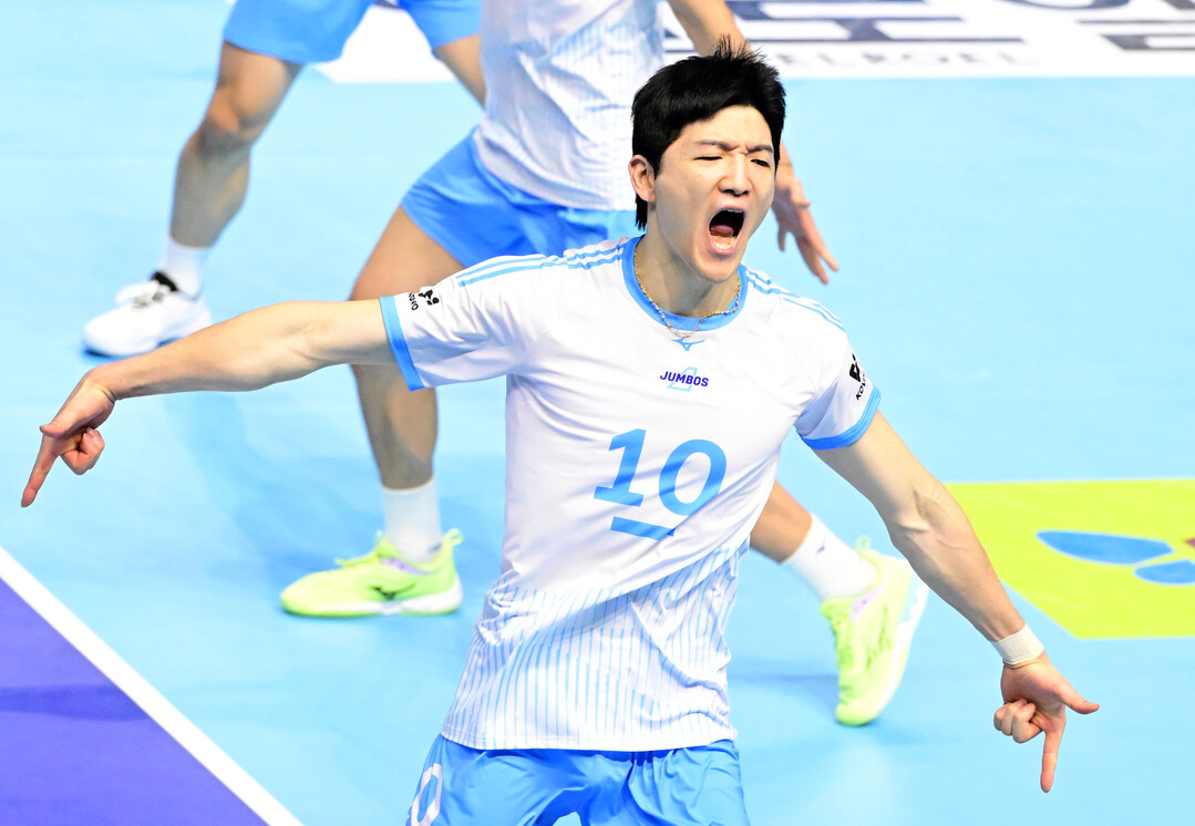 [더발리볼 = 유진형 기자] 대한항공 정지석이 31일 오후 인천 계양체육관에서 열린 '진에어 2025~2026 V-리그' 우리카드와의 경기에서 승리한 뒤 기뻐하고 있다.