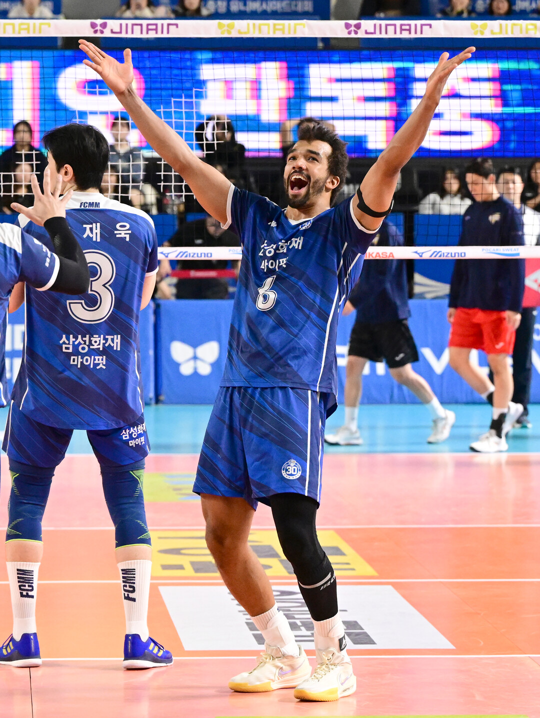 [더발리볼 = 유진형 기자] 삼성화재 아히가 10일 오후 대전 충무실내체육관에서 열린 '진에어 2025~2026 V-리그' 한국전력과의 경기에서 승리한 뒤 기뻐하고 있다.
