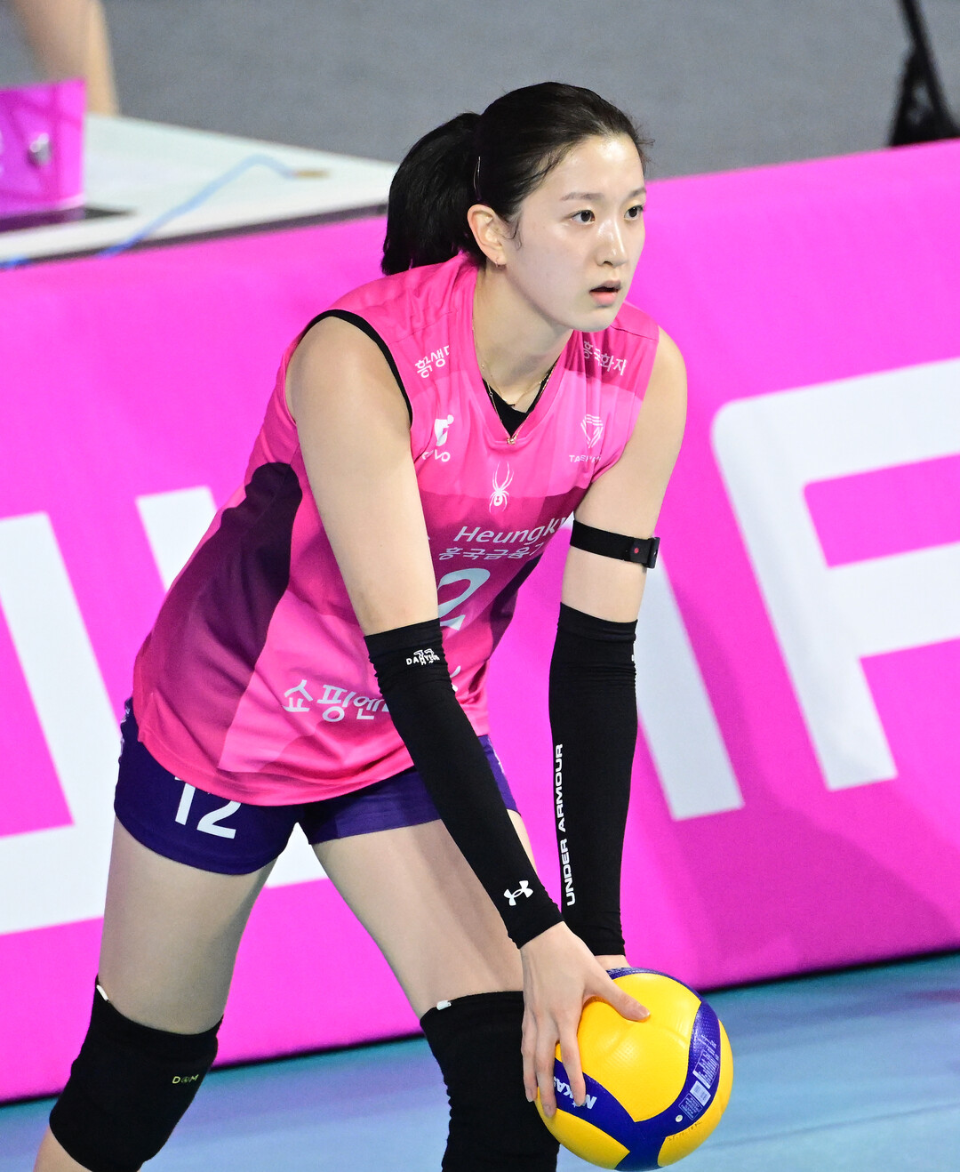 [더발리볼 = 유진형 기자] 흥국생명 이다현이 18일 오후 인천 삼산월드체육관에서 열린 '진에어 2025~2026 V-리그' 흥국생명과의 경기에서 서브를 넣고 있다.