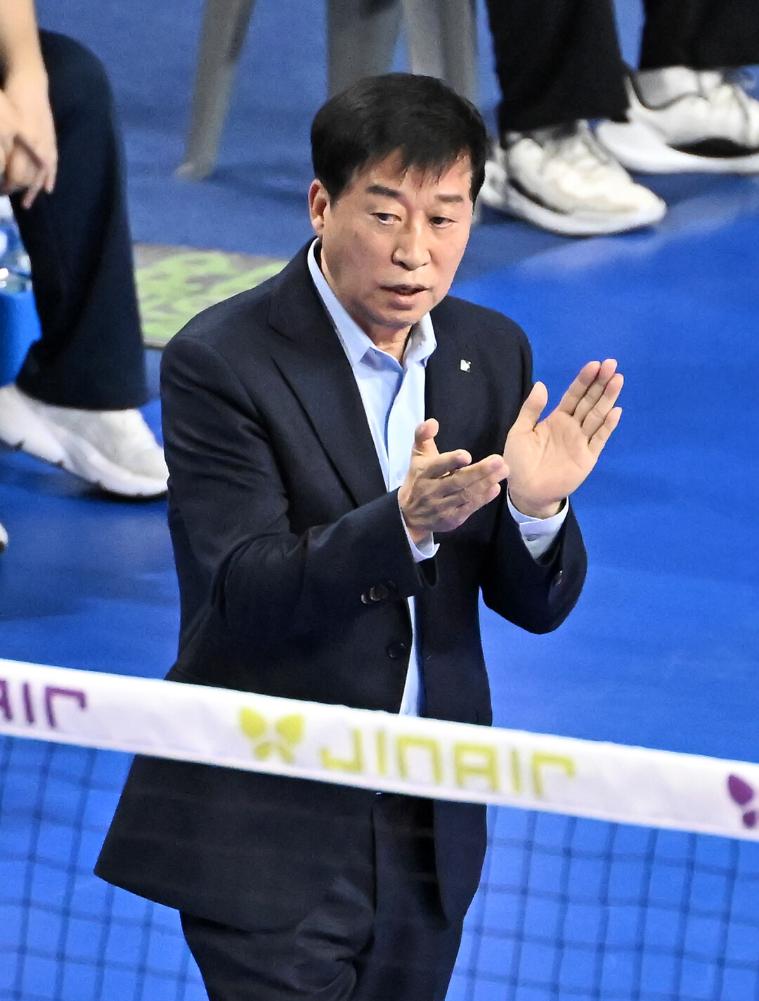[더발리볼 = 송일섭 기자] IBK기업은행 김호철 감독이 25일 오후 경기도 화성시 화성실내체육관에서 진행된 '2025-2026 KOVO 프로배구 V리그' 여자부 IBK기업은행과 페퍼저축은행의 경기에서 선수들에 박수를 보내고 있다. [사진 = 한국배구연맹(KOVO)]