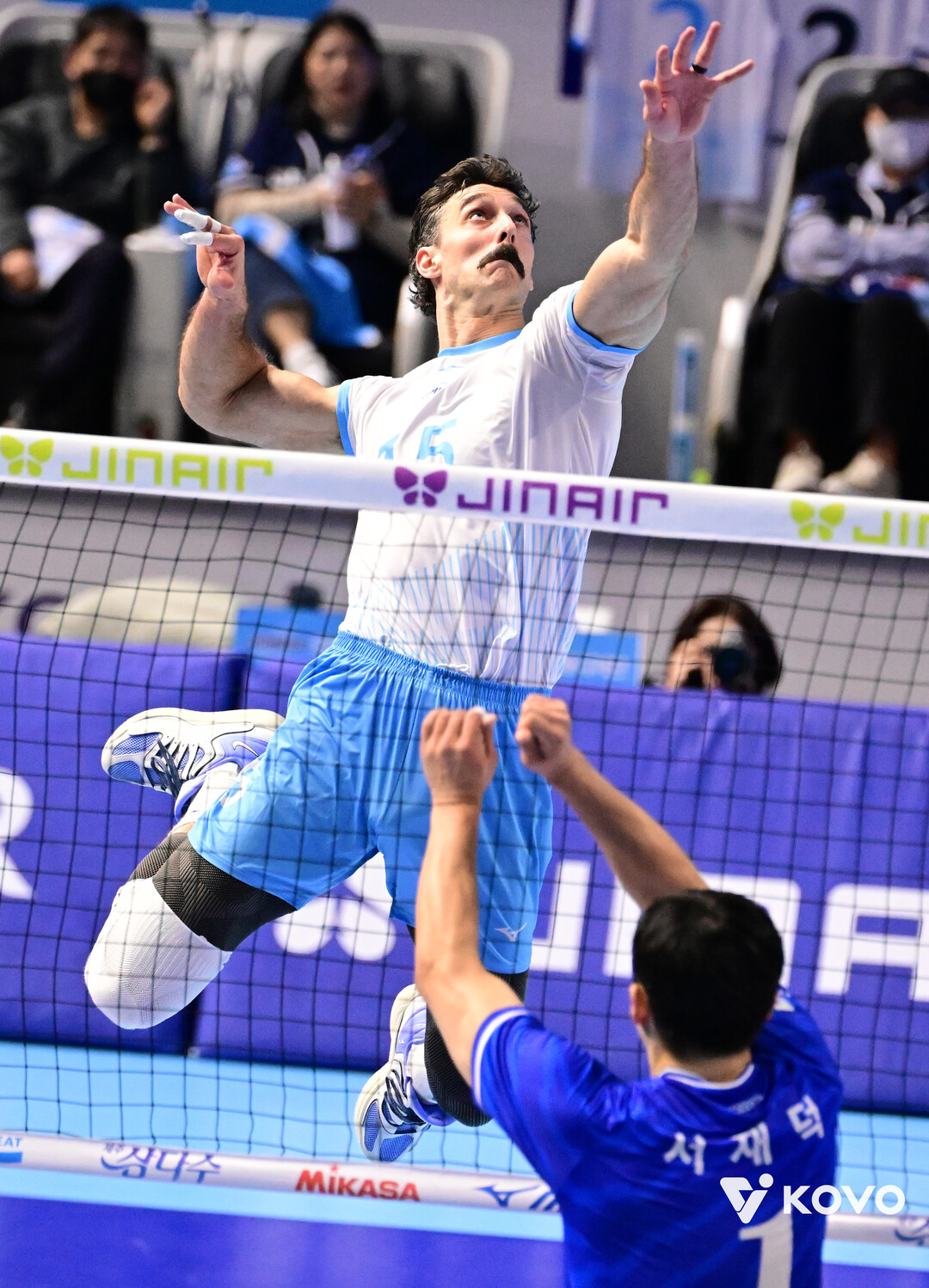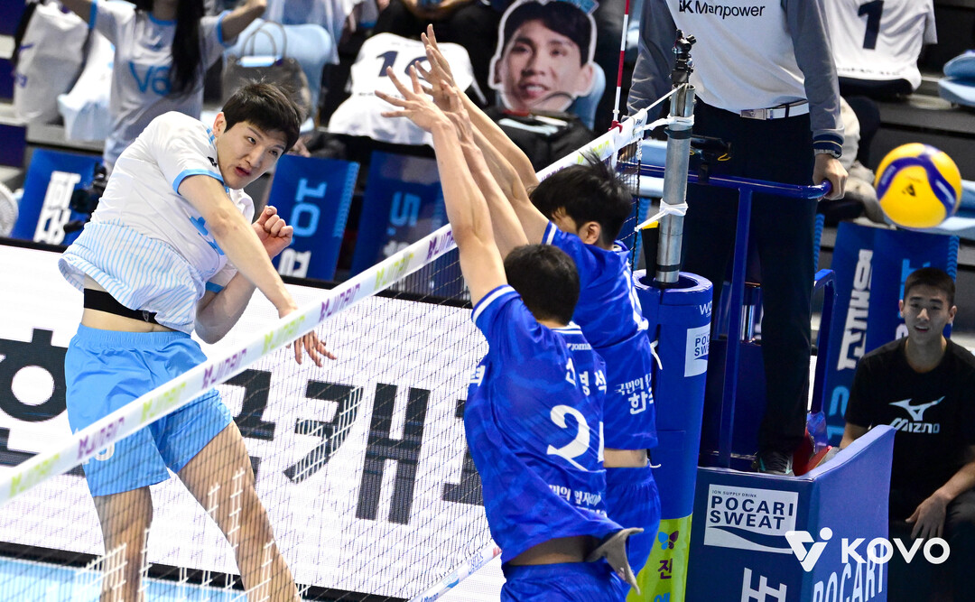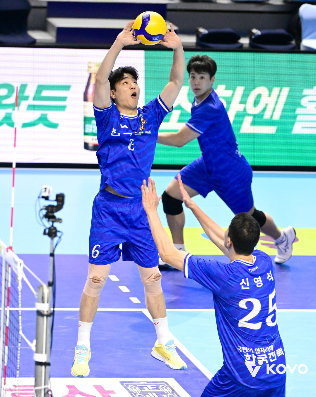 대한항공은 강한 서브와 공격력을 바탕으로 경기를 장악했다. '에이스' 정지석이 블로킹 4개와 서브 득점 2개를 포함해 팀 내 최다인 23점에 공격 성공률 65%를 기록했다. 러셀과 정한용도 각각 18점, 13점을 힘을 더한 가운데 블로킹에서 11-6으로 앞섰다.