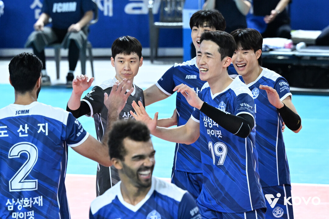 삼성화재는 8일 오후 2시 대전충무체육관에서 펼쳐진 KB손해보험과 ‘진에어 2025-2026 V-리그’ 1라운드에서 세트 스코어 3-1(25-15, 27-25, 20-25, 25-20)로 승리했다. 삼성화재는 2연패에서 탈출하며 4위(승점 7)로 올라섰다.