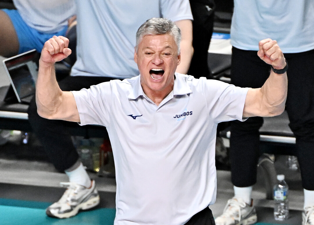 [더발리볼 = 송일섭 기자] 대한항공 헤난 감독이 28일 오후 서울 장충체육관에서 진행된 '2025-2026 진에서 V리그' 우리카드와 대한항공의 경기에서 득점에 포효하고 있다.