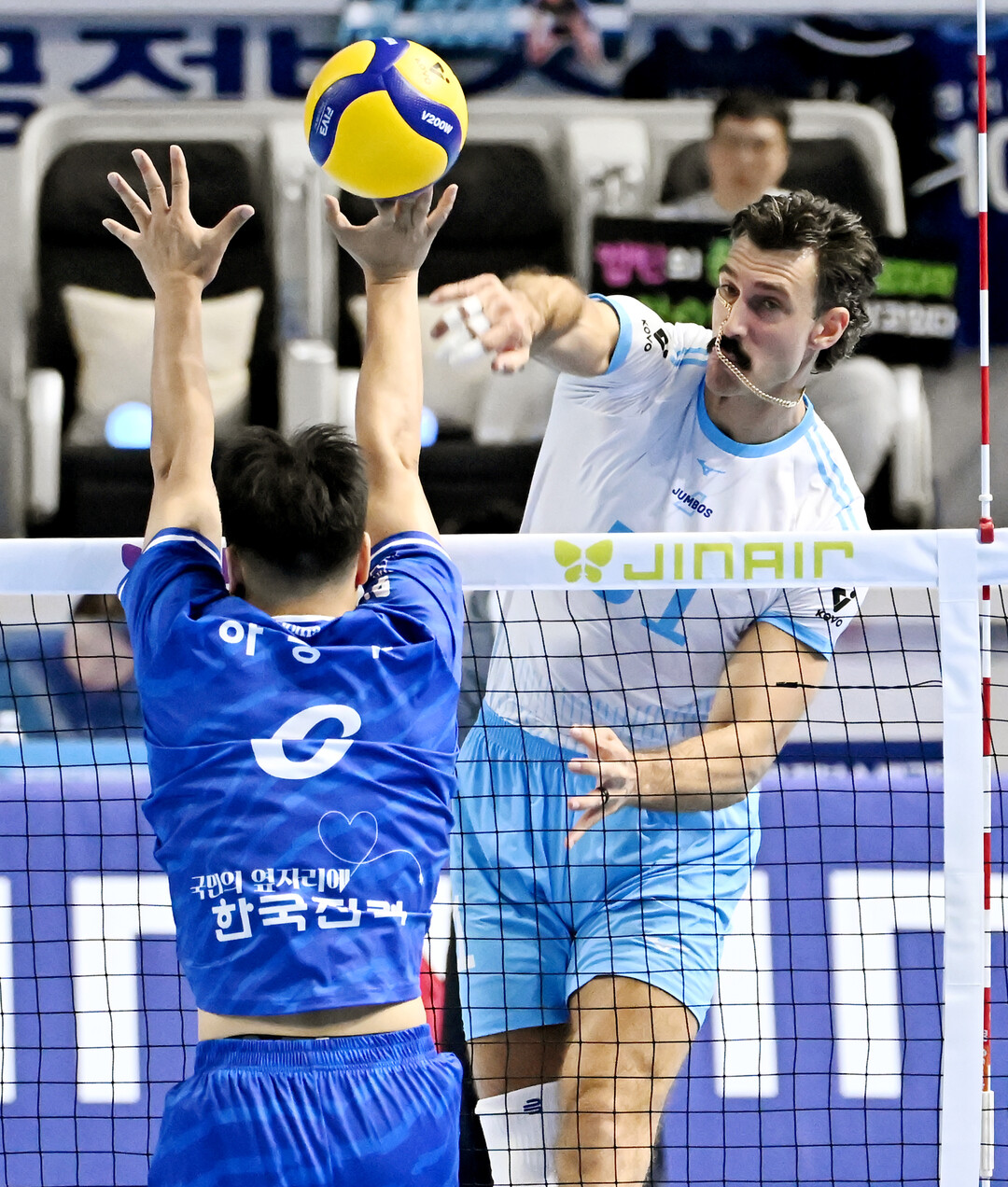 [더발리볼 = 송일섭 기자] 대한항공 러셀이 23일 오후 인천광역시 계양구 계양체육관에서 진행된 '2025-2026 KOVO 진에어 V리그' 남자부 대한항공과 한국전력의 경기에서 스파이크를 하고 있다. [사진 = 한국배구연맹(KOVO)]