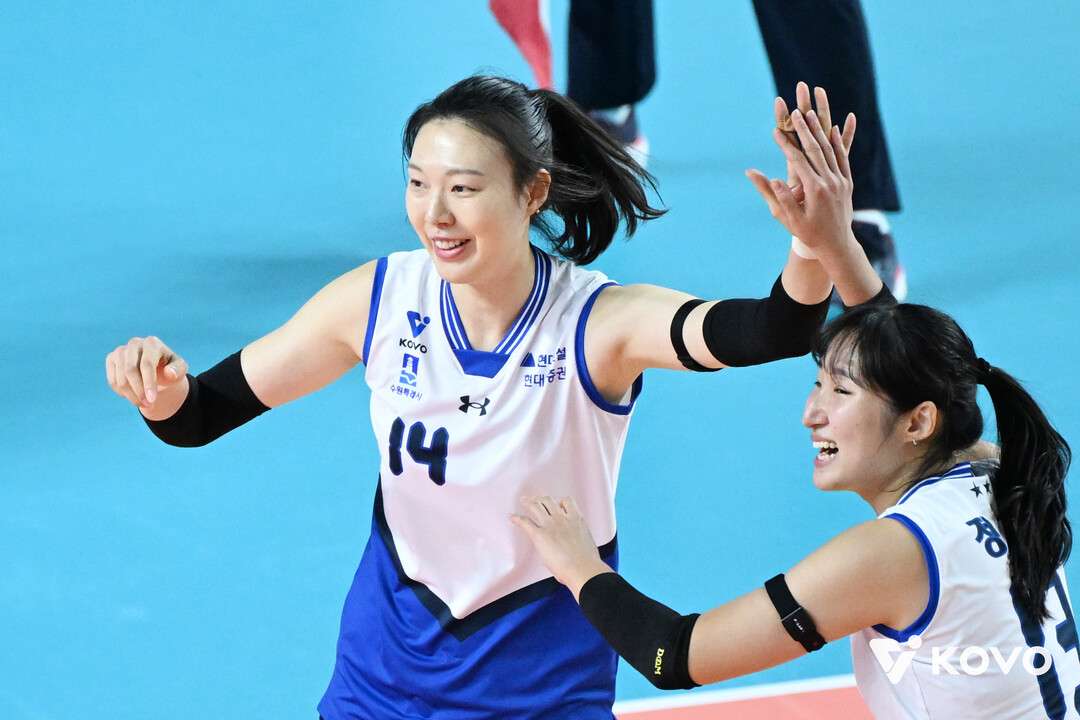 한국도로공사는 15일 오후 4시 10분 김천실내체육관에서 펼쳐진 현대건설과의 ‘진에서 -2025-2026 V-리그’ 2라운드 경기에서 세트 스코어 3-1(25-18, 25-23, 19-25, 25-17)로 승리했다.