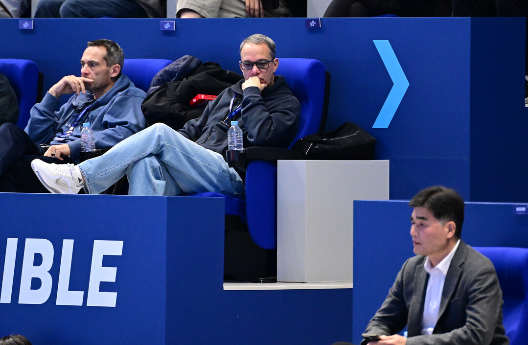 [더발리볼 = 유진형 기자] 전 우리카드 파에스 감독이 1일 오후 인천 계양실내체육관에서 열린 '진에어 2025~2026 V-리그' 대한항공과 삼성화재의 경기를 보고 있다.