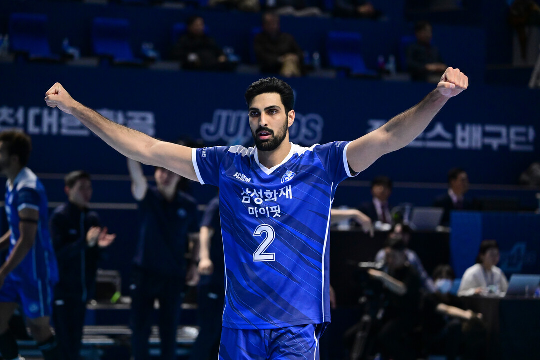 [더발리볼 = 유진형 기자] 삼성화재 도산지가 1일 오후 인천 계양실내체육관에서 열린 '진에어 2025~2026 V-리그' 대한항공과의 경기에서 승리한 뒤 기뻐하고 있다.