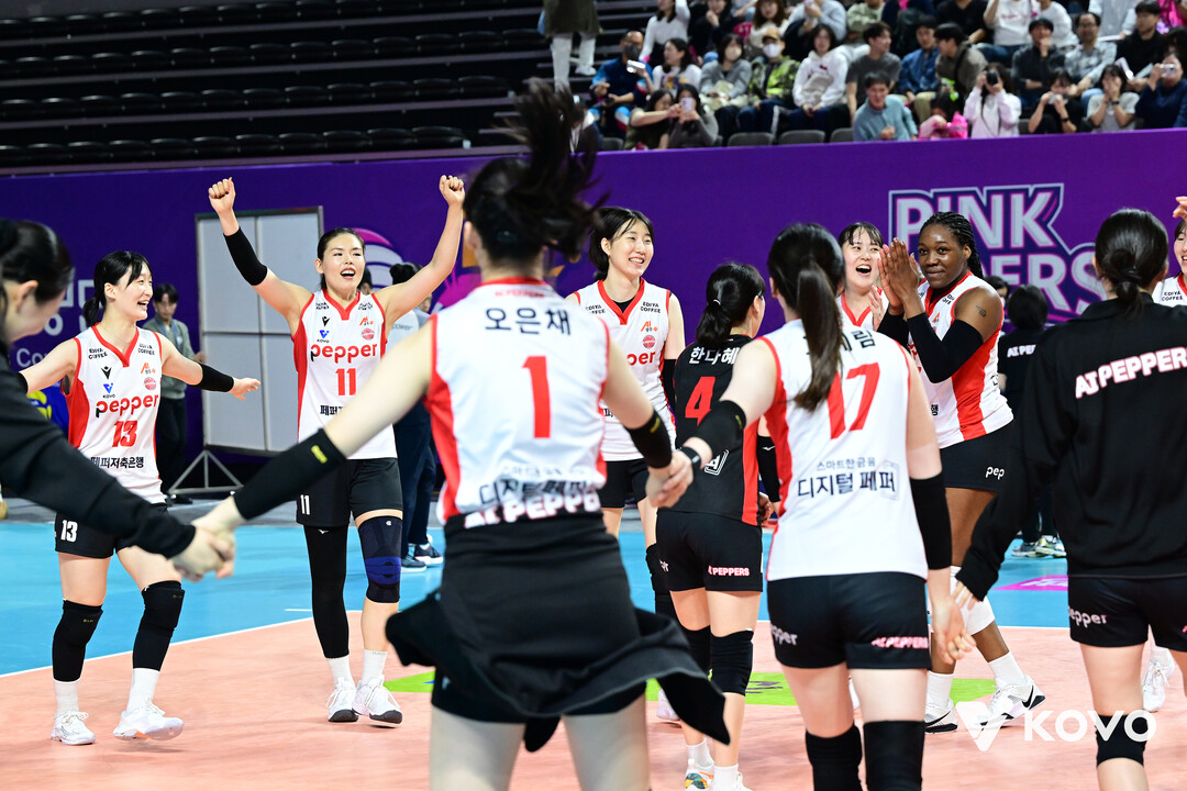 이날 승리로 페퍼저축은행은 3승1패(승점 8)를 기록하며 선두 도약에 성공했다. 한국도로공사와 승점, 승수까지 같으나 세트 득실률에서 앞섰다.