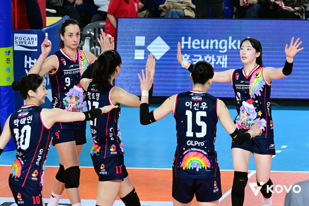 현재 정관장은 4승9패(승점 11)로 최하위에 위치하고 있다. 3위 GS칼텍스(6승7패, 승점 19)와 승점 차는 8이다.