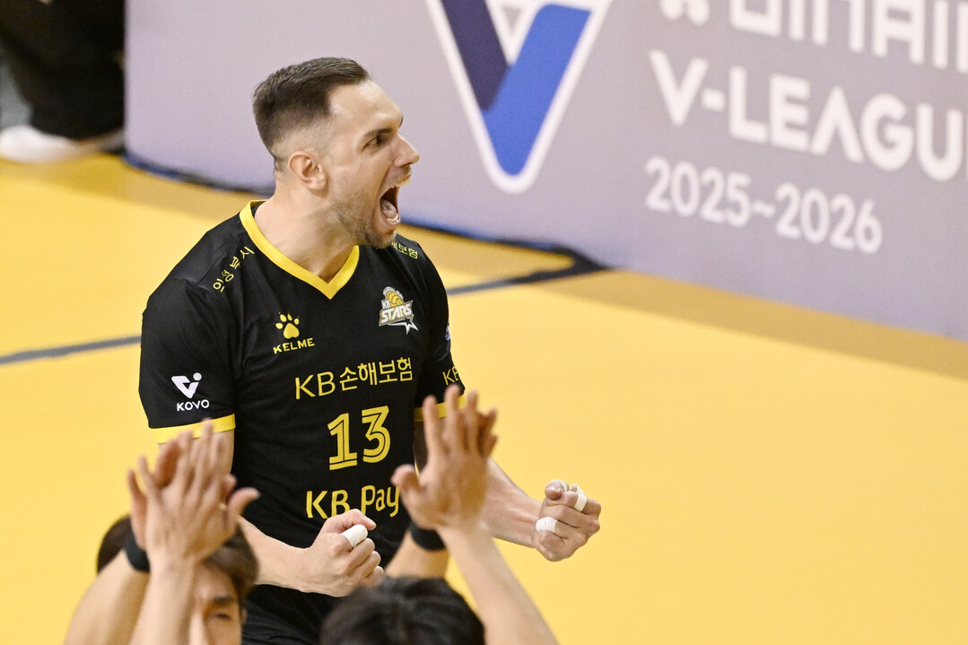 [더발리볼 = 한혁승 기자] 26일 경기도 의정부 경민대학교 기념관에서 열린 진에어 2025~2026 V-리그 남자부 KB손해보험-대한항공 1라운드 경기.
