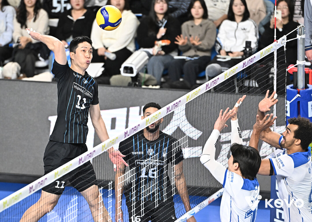 고 대행은 3세트에 이재현을 선발 세터로 기용하는 강수를 뒀다. 이재현은 경기 초반 맹활약을 펼쳤다. 모든 공격수들을 고르게 살려가며 팀의 첫 번째 테크니컬 타임아웃 선착을 이끌었다. 10-9에서는 김준우가 바야르사이한의 속공을 블로킹으로 잡아내며 격차를 조금 더 벌리기도 했다.