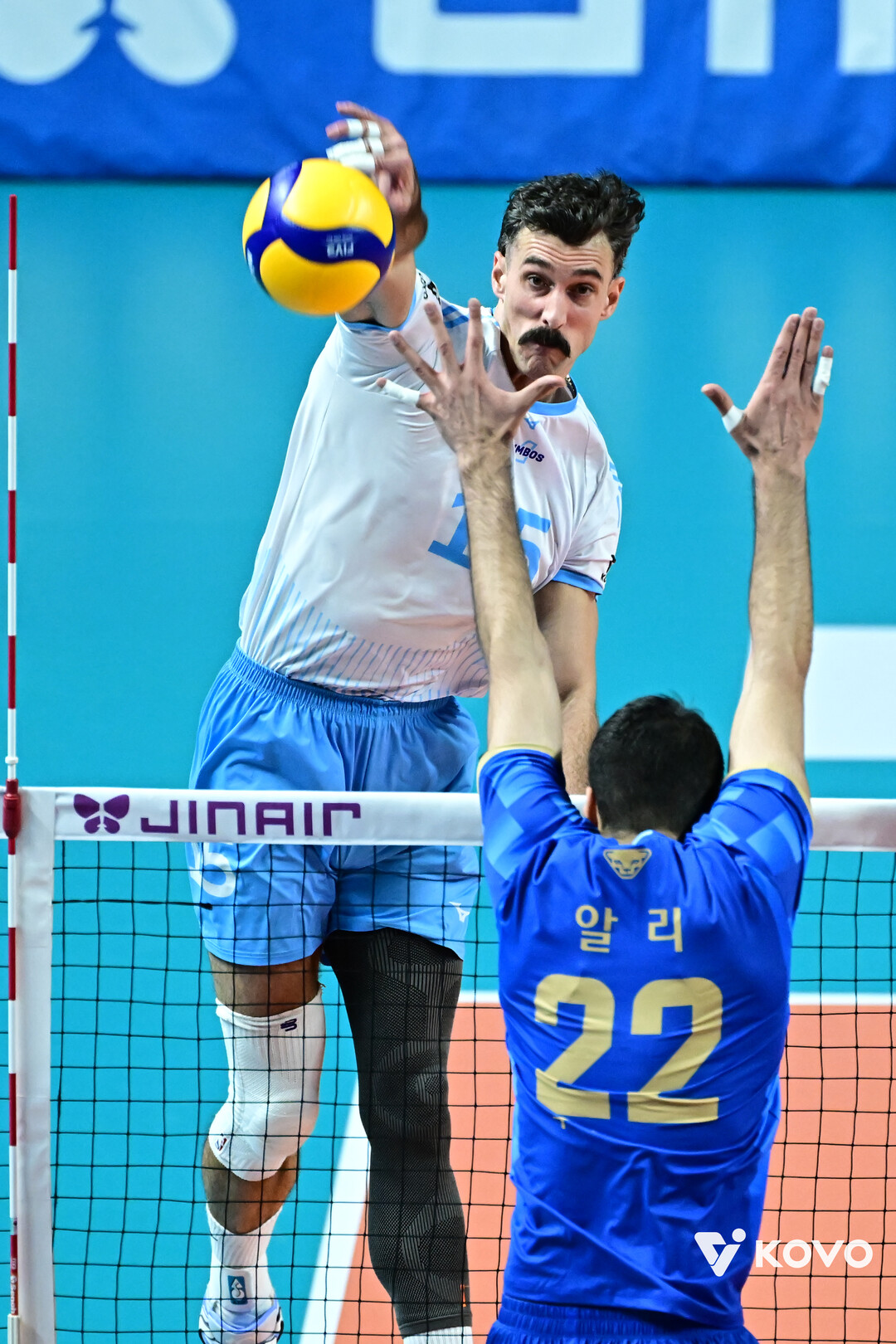 1세트 초반, 양 팀 모두 서브 공략에 부담이 큰 듯 서브 범실이 난무했다. 공격 양상도 유사했다. 국내 공격수들보다는 아라우조와 러셀 쪽에 비중이 확실히 쏠렸다. 두 팀은 10점대에 나란히 진입하면서 양보 없는 초중반 접전을 벌였다.