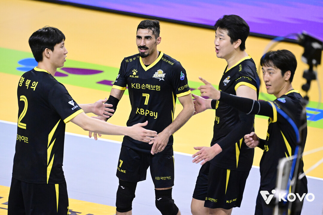 홈팀 KB손해보험은 아웃사이드 히터 나경복을 다시 선발로 기용했다. 아시아쿼터 야쿱의 대각 자리에 들어섰다. 세터 황택의와 아포짓 비예나, 미들블로커 차영석과 이준영, 리베로 김도훈이 함께 했다.