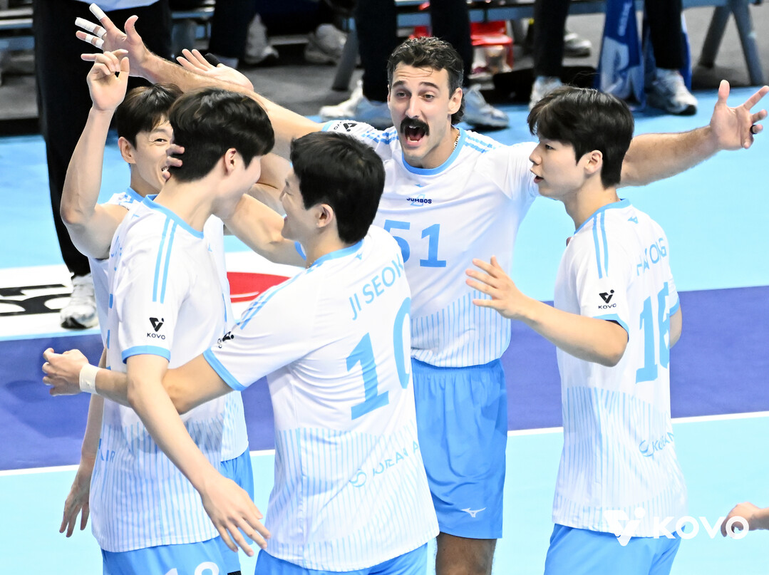 대한항공은 정지석-러셀 쌍포는 물론 중앙까지 공격력을 끌어 올리며 막강한 공격력을 드러냈다. 이날 정지석과 러셀은 23, 18점을 올렸고, 김민재도 12점을 터뜨렸다.