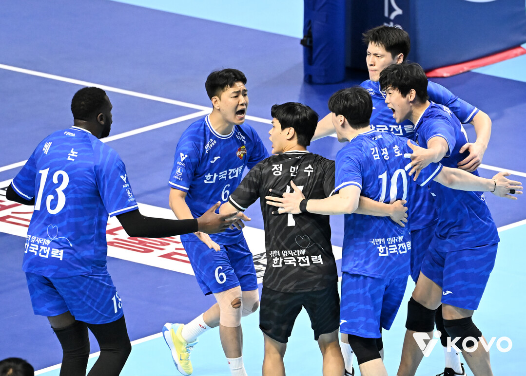 원정팀 한국전력은 선발 라인업에 변화를 꾀했다. 전날 군 복무를 마치고 전역한 하승우를 선발로 투입했고, 미들블로커 한 자리에 에디를 배치했다. 아포짓 베논과 아웃사이드 히터 김정호, 서재덕, 미들블로커 신영석, 리베로 정민수가 함께 했다.