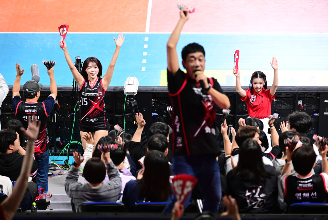 [더발리볼 = 유진형 기자] 정관장 팬들이 9일 오후 대전충무실내체육관에서 열린 '진에어 2025~2026 V-리그' 페퍼저축은행과의 경기에서 응원하고 있다.