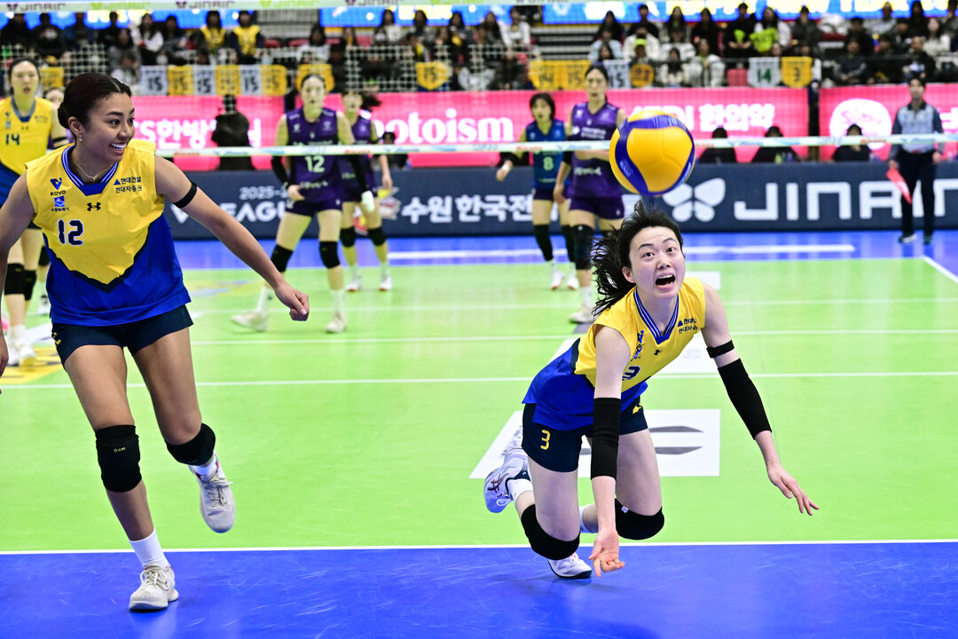 [더발리볼 = 한혁승 기자] 9일 경기도 수원실내체육관 열린 진에어 2025~2026 V-리그 여자부 현대건설-흥국생명 경기.