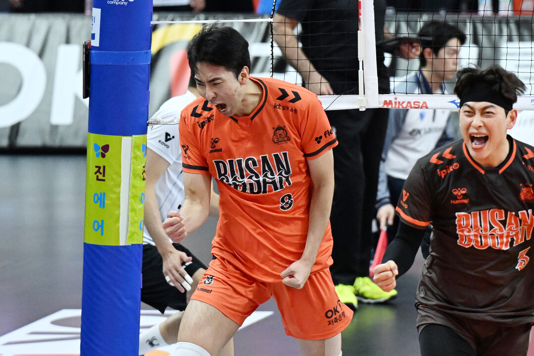 OK저축은행 차지환이 득점에 환호하고 있다.