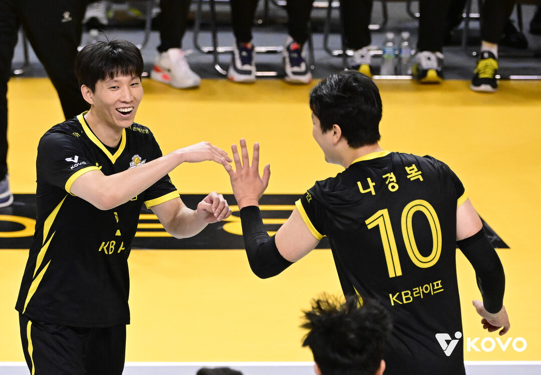 KB손해보험은 30일 오후 경민대학교 기념관에서 열린 진에어 2025~2026 V-리그 1라운드 OK저축은행과의 홈경기에서 3-0(26-24, 26-24, 25-14) 승리를 거뒀다.