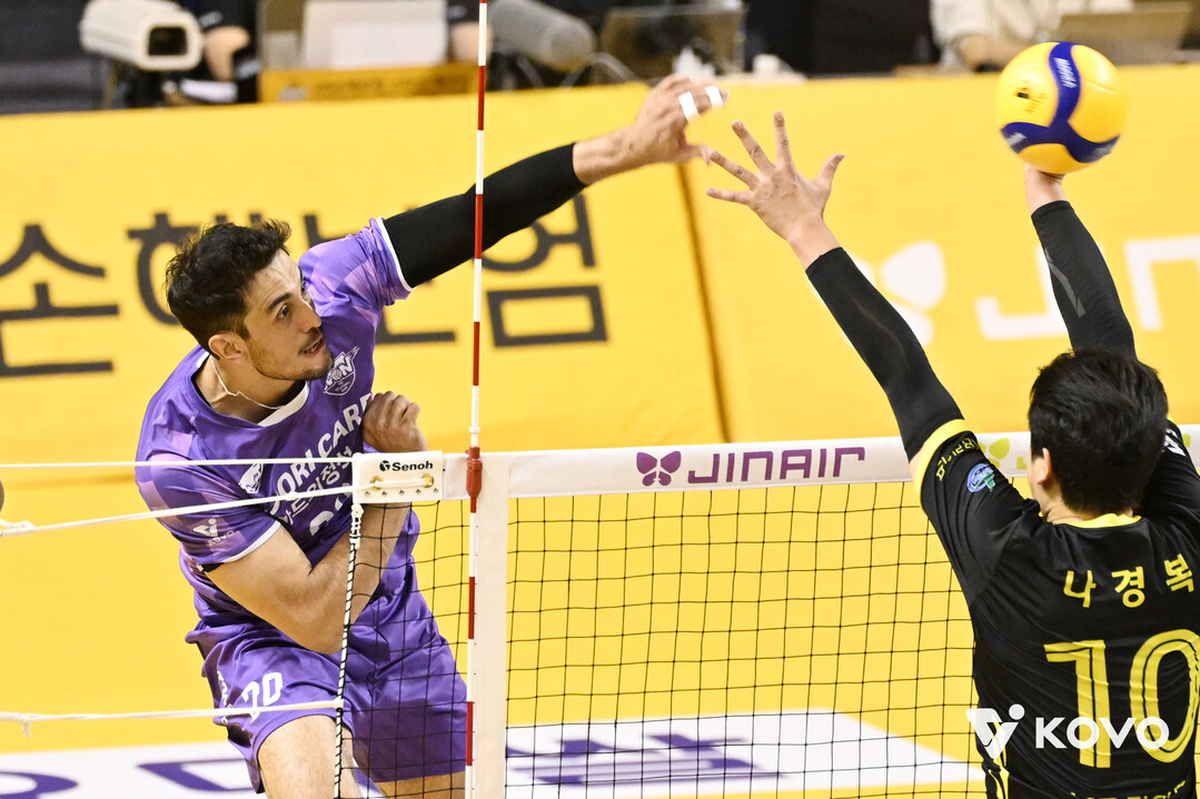 이날 KB손해보험의 아웃사이드 히터 선발 라인업은 나경복-임성진이었다. 모하메드 야쿱(등록명 야쿱)이 벤치를 지켰다. 전-후위를 가리지 않고 공수 밸런스를 잡아줄 수 있는 만능 아웃사이드 히터인 야쿱은 경기 전 인터뷰에서 적장 마우리시오 파에스 감독의 경계 대상이 되기도 했다. 파에스 감독은 “경험이 풍부하고 후위에서 팀에 정말 많은 것들을 제공할 수 있는 선수”라며 야쿱을 치켜세웠다.