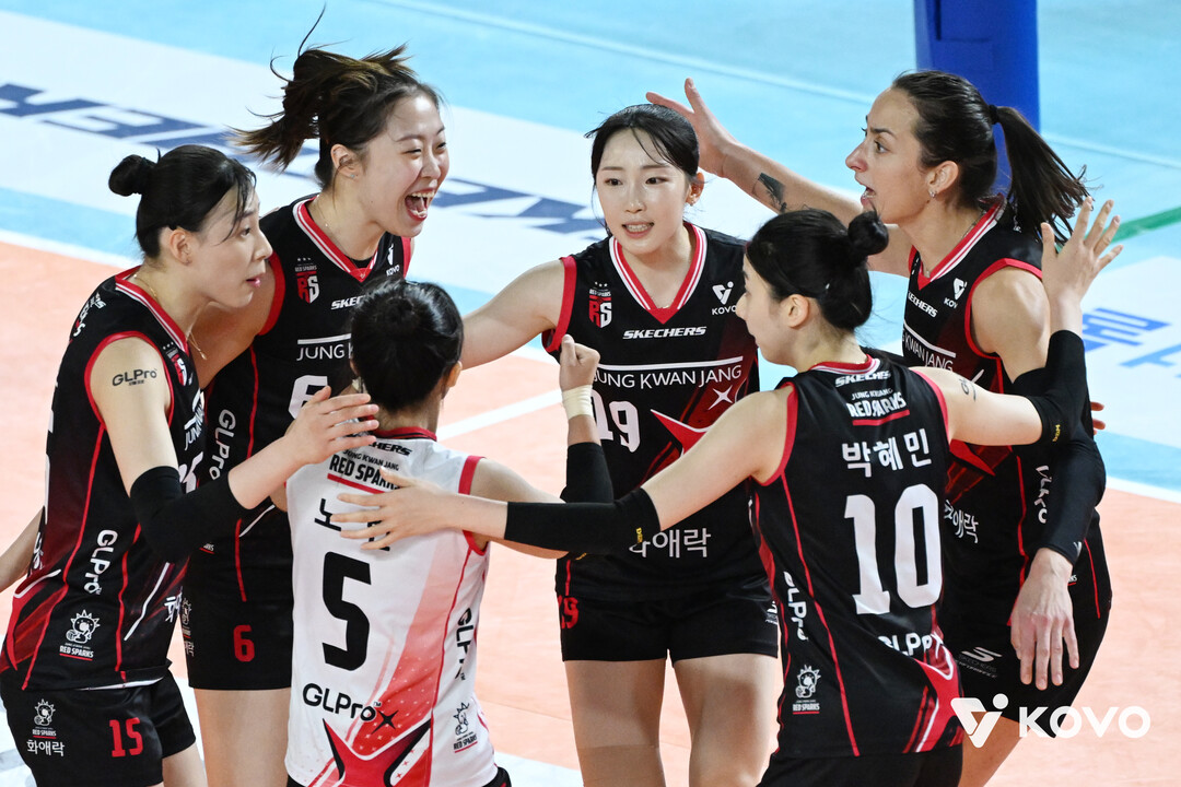 1세트에는 운이 따랐다. 한국도로공사도 흔들렸지만, 정관장이 1세트에만 범실 10개를 기록했다. 2세트에는 12-20으로 열세를 보였다. 세터 김다은이 투입된 상황에서 좀처럼 공격력을 끌어 올리지 못하며 고전했다. 이내 이예은, 이윤정 서브로 상대를 괴롭혔다. 교체 아웃된 모마가 21-23에 투입돼 랠리 매듭을 지었다. 3세트에도 우위를 점한 한국도로공사가 결국 정관장을 울렸다. 이날 모마와 강소휘는 23, 12점을 터뜨렸다.