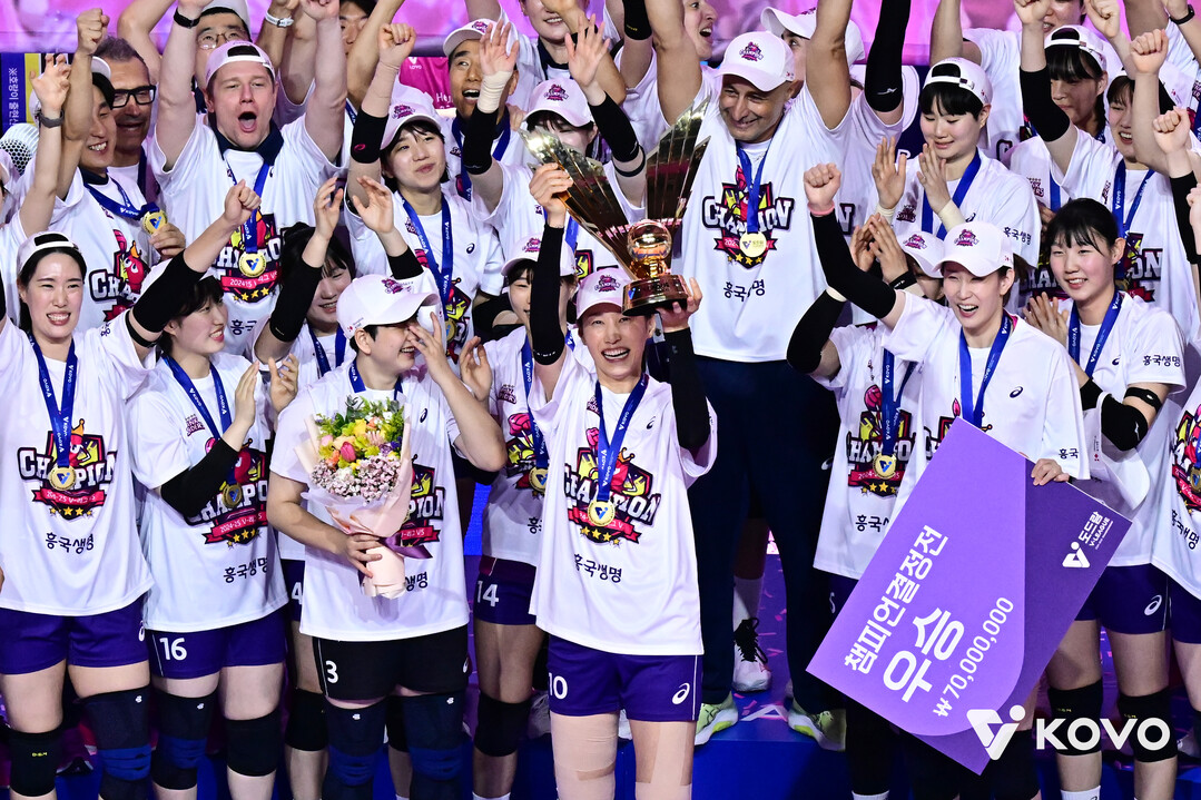2003년생 아웃사이드 히터 정윤주의 성장도 돋보인다. 김연경 대각에서 공수 양면으로 버텼다. 과감하고 빠른 공격으로 상대 허를 찔렀다. 여기에 베테랑 미들블로커 김수지까지 코트 위에서 함께 했다. 그렇게 같은 방향을 바라보며 똘똘 뭉친 흥국생명이 마침내 ‘원 팀’으로서 나란히 정상에 섰다.