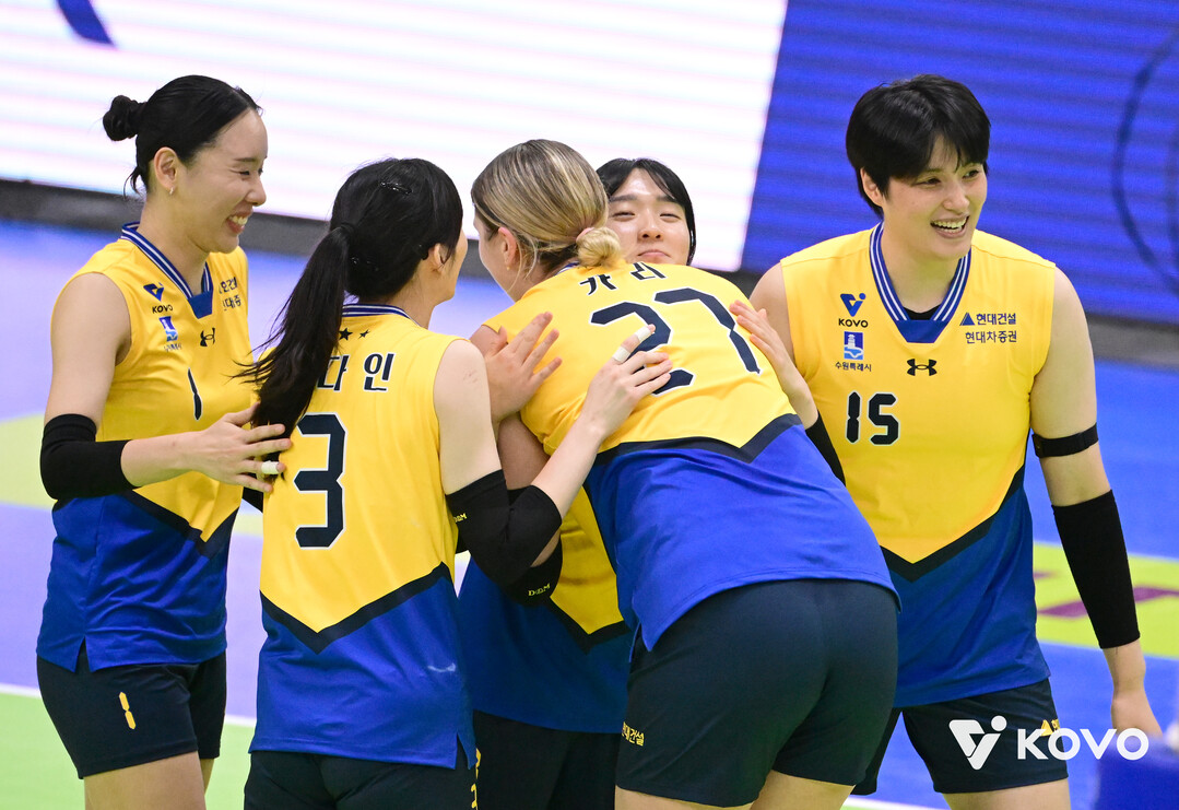 현대건설은 26일 수원체육관에서 열린 진에어 2025~2026 V-리그 1라운드 정관장과 홈경기에서 3-1(25-18, 21-25, 25-23, 25-22) 승리를 거뒀다.