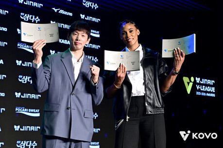 [더발리볼 = 그랜드워커힐(서울) 이보미 기자] 대한항공 세터 한선수와 GS칼텍스 외국인 선수 실바가 2025-2026 V-리그 정규리그 MVP를 차지했다.