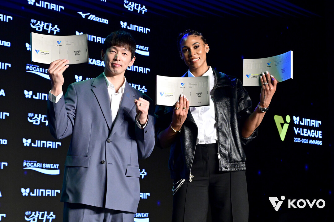한선수와 실바는 13일 그랜드워커힐 서울에서 열린 진에어 2025~2026 V-리그 시상식에서 정규리그 MVP를 수상했다.