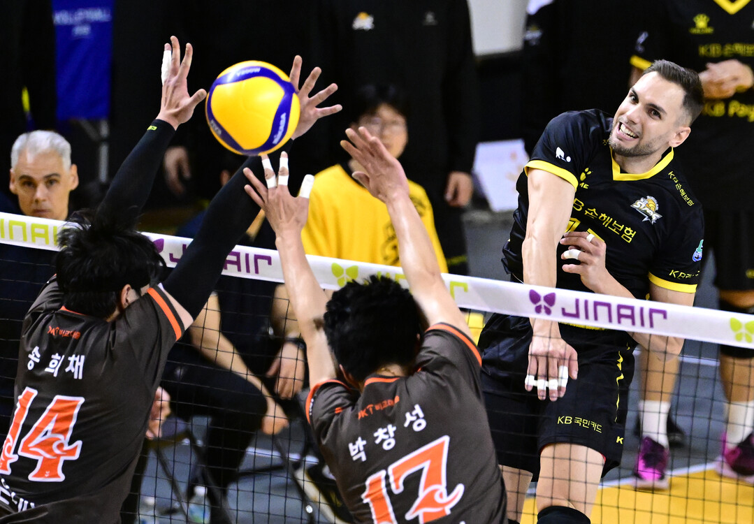 [더발리볼 = 유진형 기자] KB손해보험 비예나가 30일 오후 경기도 의정부시 경민대학교에서 열린 '진에어 2025~2026 V-리그' OK저축은행과의 경기에서 스파이크를 때리고 있다.