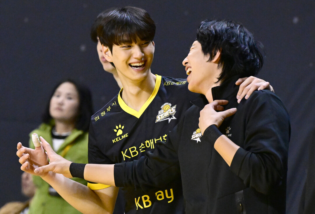 [더발리볼 = 유진형 기자] KB손해보험 임성진이 30일 오후 경기도 의정부시 경민대학교에서 열린 '진에어 2025~2026 V-리그' OK저축은행과의 경기에서 승리한 뒤 기뻐하고 있다.