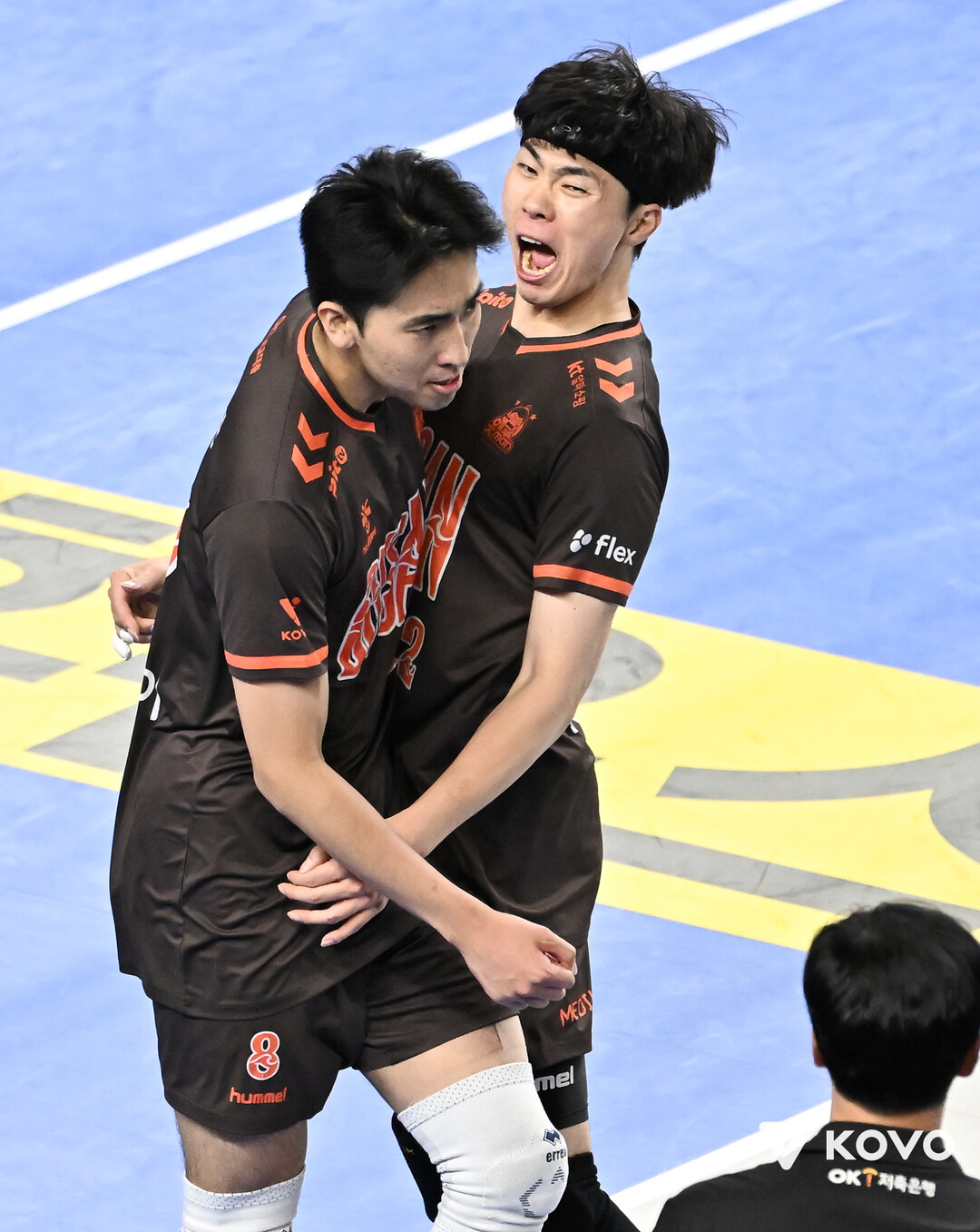 두 선수는 혹독한 비시즌을 보냈다. 폼과 플레이를 교정하는 과정을 거치며 새로운 선수로 거듭났다. 그리고 차지환이 1라운드가 지나기 전에 제대로 포텐셜을 터뜨렸다. 차지환은 2일 천안 유관순체육관에서 열린 현대캐피탈과 OK저축은행의 진에어 2025~2026 V-리그 남자부 1라운드 경기에서 69.57%의 공격 성공률로 블로킹 2개‧서브 득점 3개 포함 21점을 퍼부으며 팀의 3-1(24-26, 25-19, 25-22, 25-16) 승리를 이끌었다. 차지환의 V-리그 데뷔 이래 최고의 경기였다고 해도 과언이 아니었다.