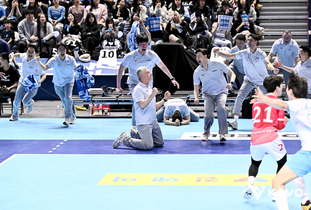 이날 대한항공에서는 4명이 두 자릿수 득점을 올렸다. 외국인 선수 마쏘는 블로킹 6개, 서브 1개를 포함해 17점을 선사했다. 정한용도 14점을 터뜨리며 팀 우승에 혁혁한 공을 세웠다. 임동혁과 정지석이 12, 11점을 올리며 마지막 5차전에서 포효했다.