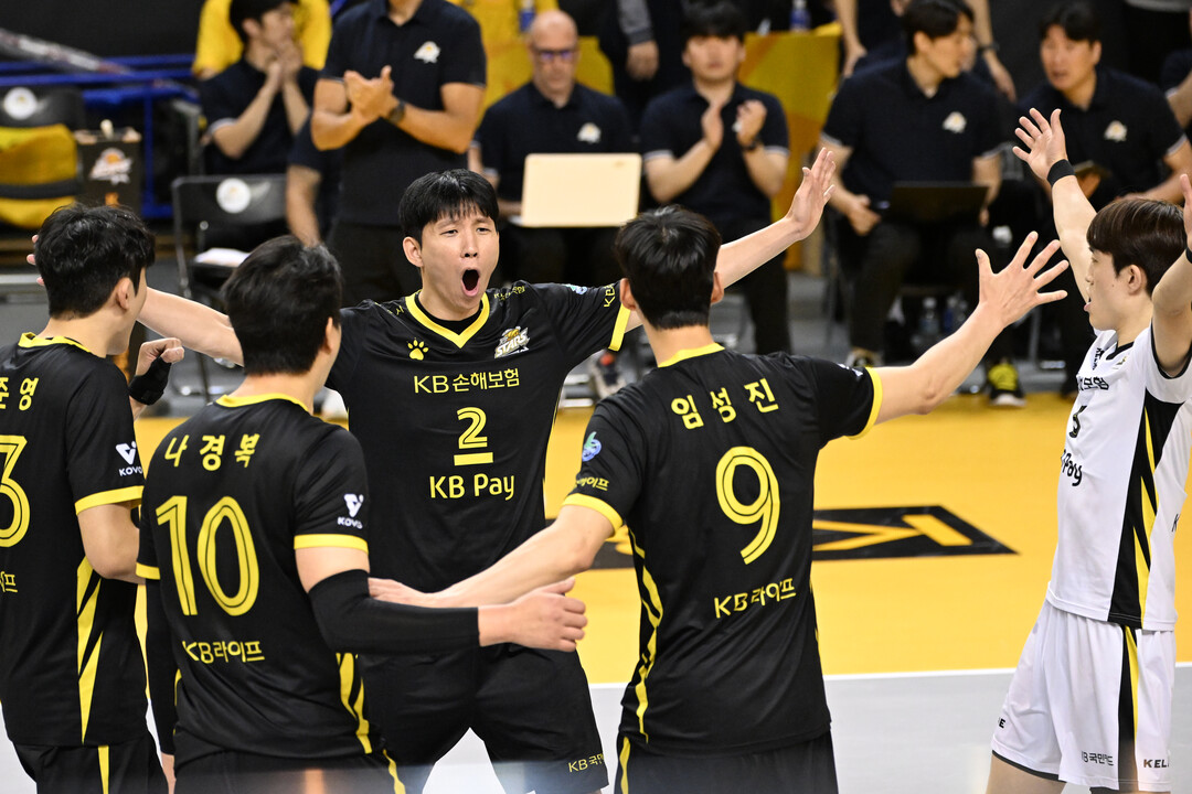[더발리볼 = 한혁승 기자] 4일 경기도 의정부 경민대학교 기념관에서 열린 진에어 2025~2026 V-리그 남자부 KB손해보험-우리카드 경기.