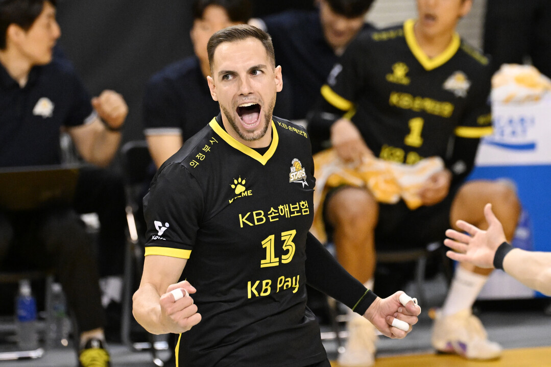 KB손해보험 비예나가 환호하고 있다.