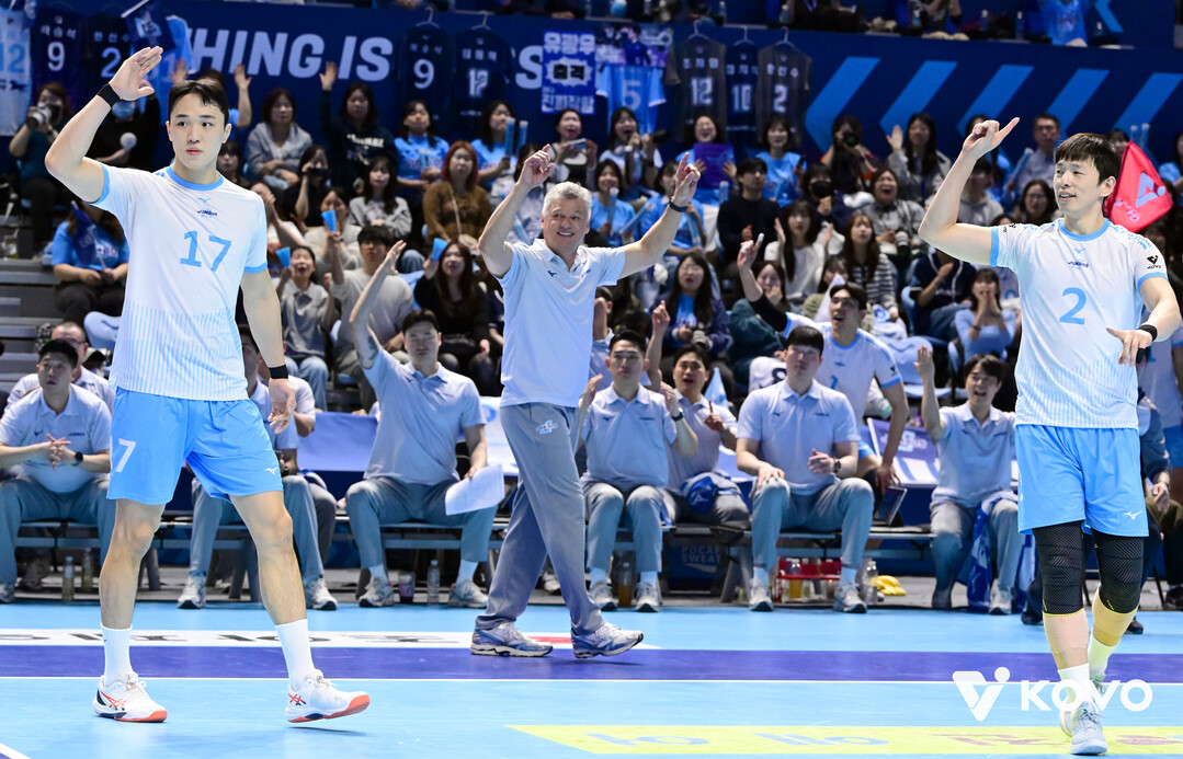 이날 정지석이 경기 후반부터 살아나면서 19점을 터뜨렸고, ‘토종 아포짓’ 임동혁도 후위 공격만 10개를 성공시키며 19점 활약을 펼쳤다. 새 외국인 선수 마쏘와 정한용도 15, 12점을 올리며 포효했다.