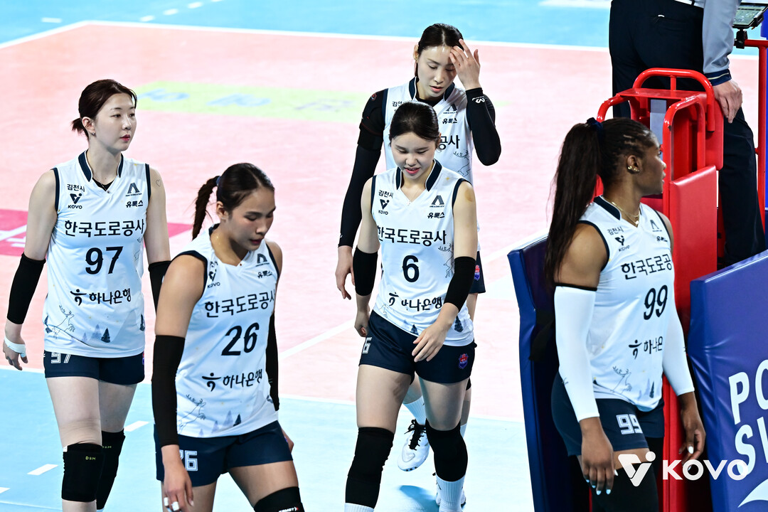 한국도로공사는 1일 오후 대전 충무체육관에서 열린 진에어 2025~2026 V-리그 4라운드 첫 경기에서 정관장을 만나 0-3(21-25, 16-25, 19-25)으로 패했다.