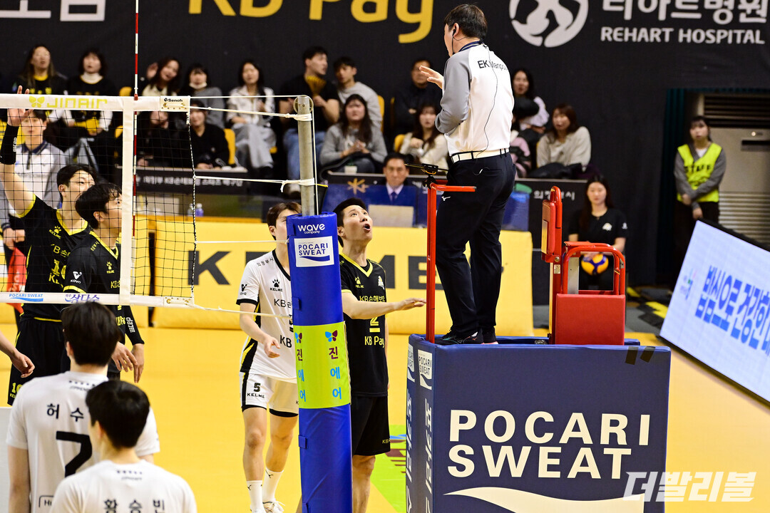 이 과정에서 KB손해보험은 강하게 항의했으나 받아들여지지 않았다. 김진만 코치는 2세트 시작과 함께 세트 퇴장을 당했다.