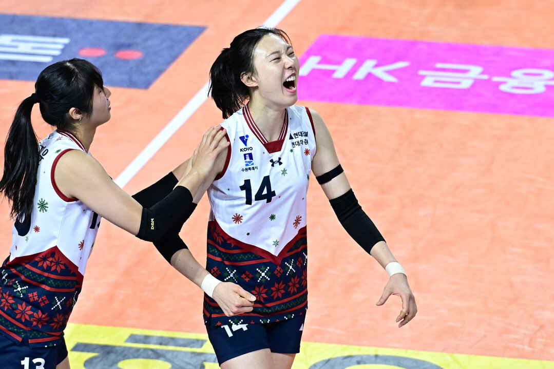 현대건설 양효진이 블로킹 득점으로 경기 승리를 확정 지었다.