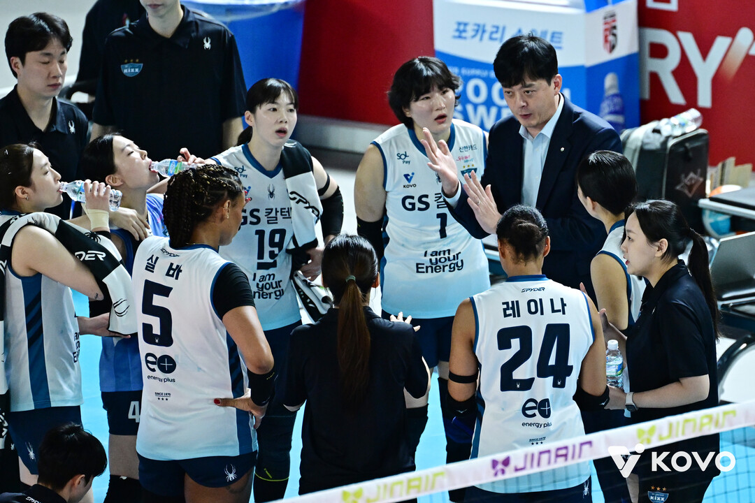 GS칼텍스는 이날도 미들블로커 오세연-최가은을 선발로 투입했다. 3세트 도중에는 최가은 대신 권민지를 기용해 눈길을 끌었다. 아웃사이드 히터로 활약한 권민지를 다시 중앙에 배치한 것이다. 훈련 중 발목을 다친 최유림의 공백으로 어쩔 수 없이 권민지를 미들블로커로 투입했다.